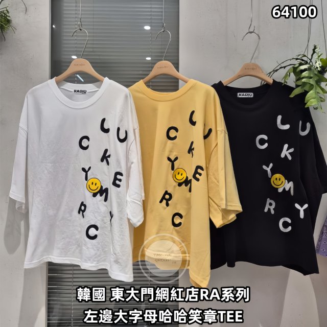 韓國 東大門網紅店RA系列 左邊哈哈笑字母背後大字母TEE【買滿5件包郵 | 7/4截單 | 預計5月初至中到貨 | 20260402B(64096.)】