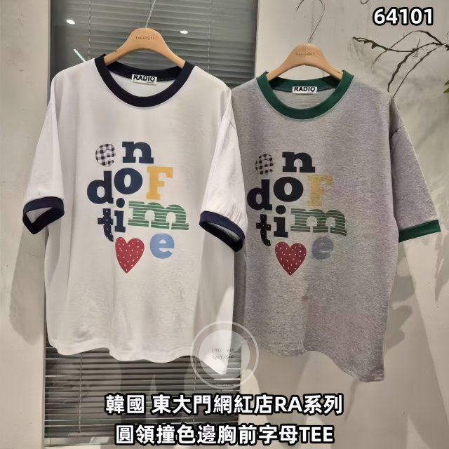 韓國 東大門網紅店RA系列 圓領撞色邊胸前字母TEE【買滿5件包郵 | 7/4截單 | 預計5月初至中到貨 | 20260402B(64101.)】