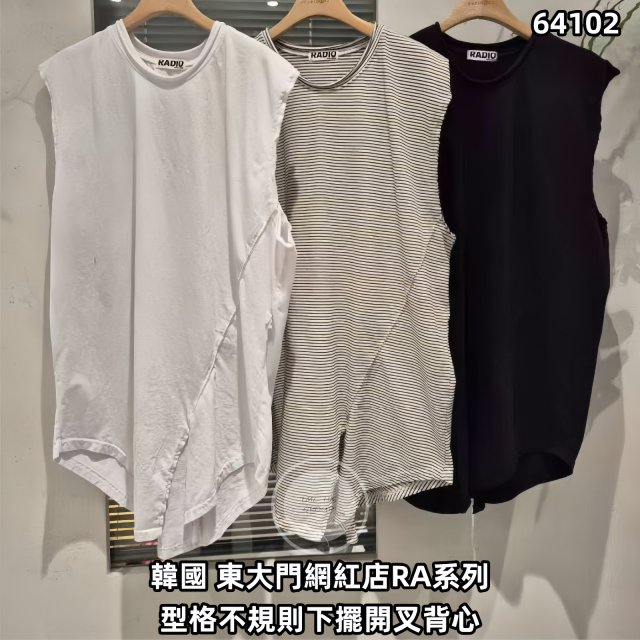 韓國 東大門網紅店RA系列 型格不規則下擺開叉背心【買滿5件包郵 | 7/4截單 | 預計5月初至中到貨 | 20260402B(64102.)】
