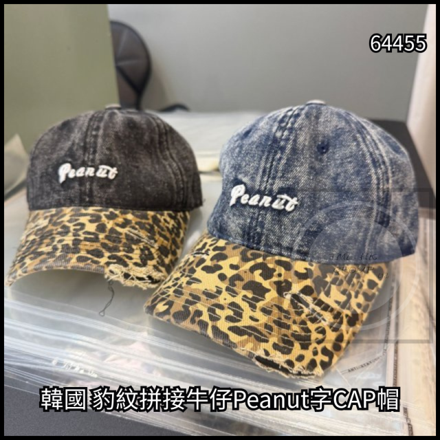 韓國 豹紋拼接牛仔Peanut字CAP帽【11/4截單 | 預計5月中至尾到貨 | 20260406A(64455.)】