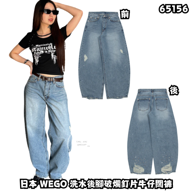 日本 WEGO 洗水後腳破爛釘片牛仔闊褲(FG26SS-073)【買滿$1500包郵 | 19/4截單 | 預計6月中至尾到貨 | 20260414A(65156)】