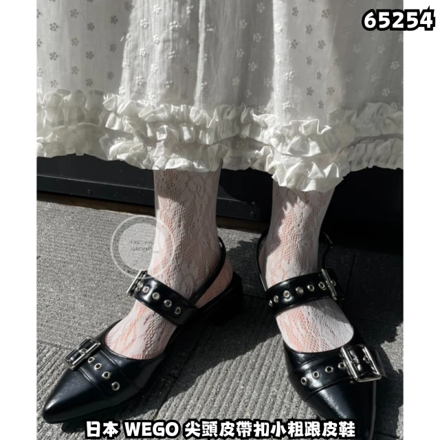 日本 WEGO 尖頭皮帶扣小粗跟皮鞋(WE24AW08-SG0025)【買滿$1500包郵 | 19/4截單 | 預計6月中至尾到貨 | 20260414A(65254.)】