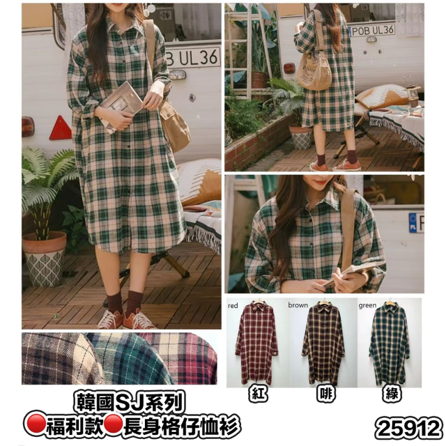 韓國SJ系列 長身格仔恤衫【現貨| 預計2-3星期派貨 | 20260104(25912.)】