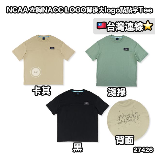 🟢27426.🌟NCAA 左胸NACC LOGO背後大logo點點字Tee(74251012)現貨在倉