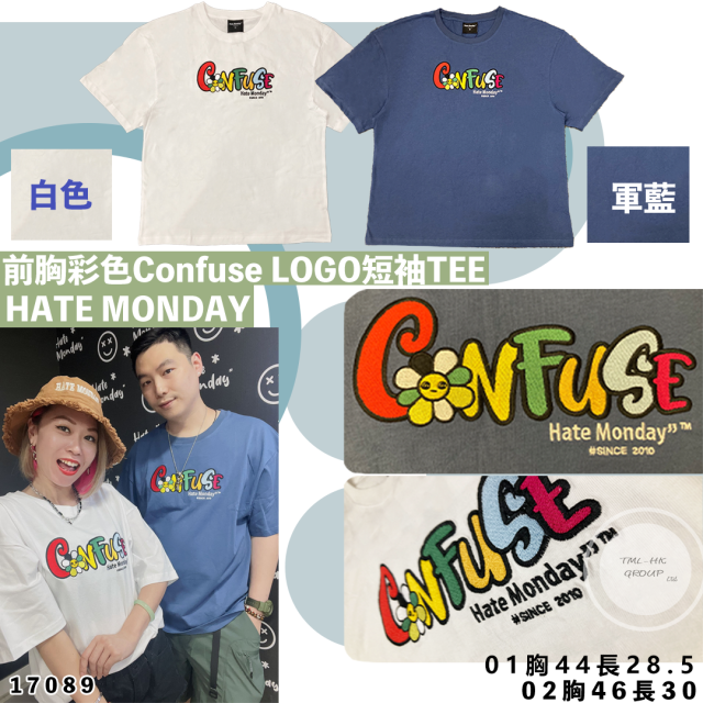 17089.HATE MONDAY前胸彩色Confuse LOGO短袖TEE(S2304T03)