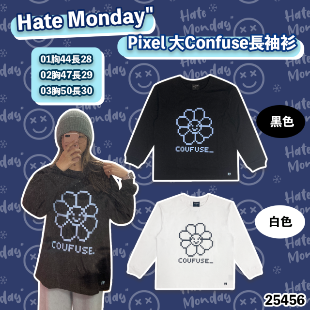 25456.Hate Monday" - Pixel 大Confuse長袖衫(HM-09T22)