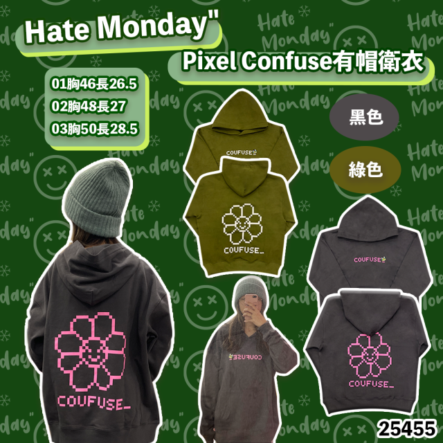 25455.Hate Monday" - Pixel Confuse有帽衛衣(HM-09H21)