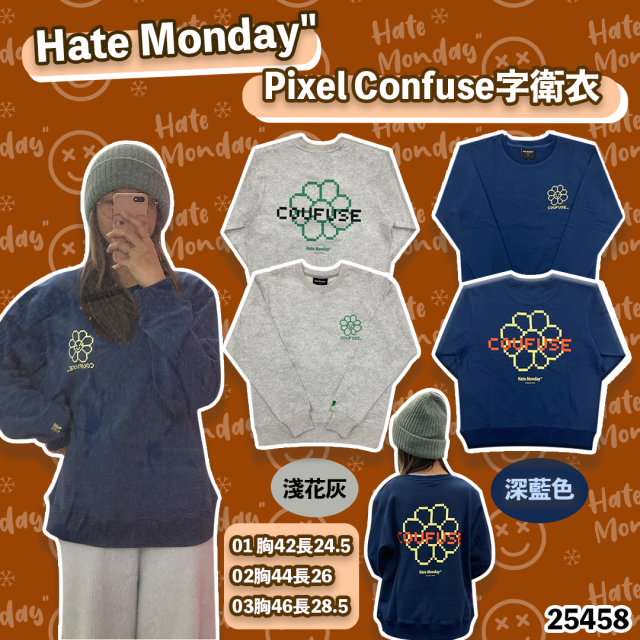 25458.Hate Monday" - Pixel Confuse字衛衣(HM-09T24)