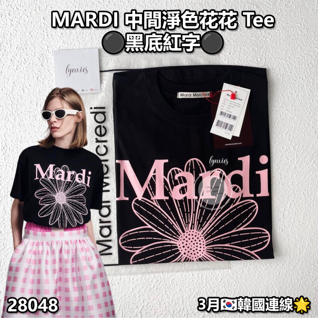 MARDI 中間淨色花花 Tee⚫🩷黑底紅字🩷 BLACK PINK⚫TSHIRT FLOWERMARDI(MFK41JSS001BKPK00)【(28048.)】現貨在倉