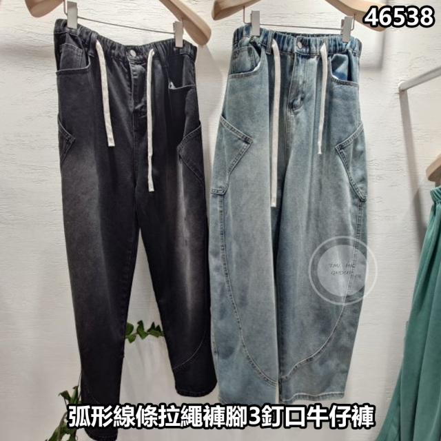 46538.29/5月韓國連線 WR系列 弧形線條拉繩褲腳3釘口牛仔褲⚠️3/6截單⚠️預計7月中到貨