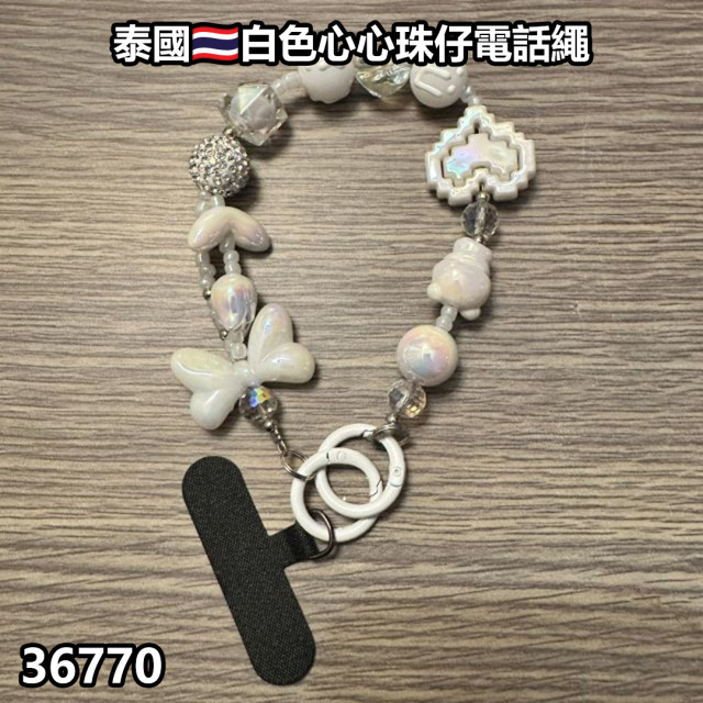 🐥執雞🐥泰國連線 泰國 白色心心珠仔電話繩【(36770.)】⚠️數量有限⚠️先入先得⚠️售完即止⚠️