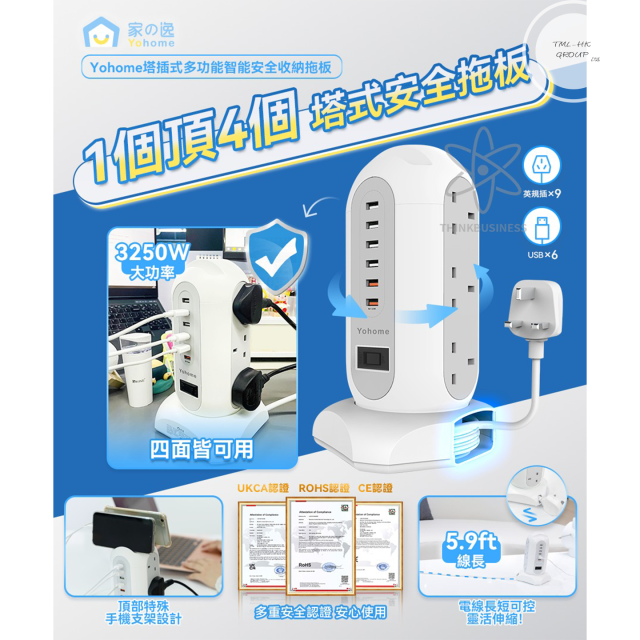 9503.🐥執雞🐥日本Yohome 塔插式多功能智能安全收納拖板⚠️數量有限⚠️先入先得⚠️售完即止