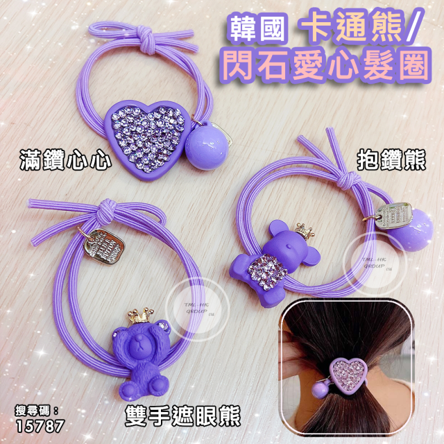 🐥執雞🐥 韓國卡通熊/閃石愛心髮圈⚠️數量有限⚠️先入先得⚠️售完即止⚠️ (15787.)】