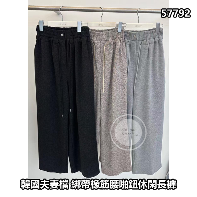 🐥執雞🐥韓國夫妻檔 綁帶橡筋腰啪鈕休閑長褲【(57792.)】⚠️數量有限⚠️先入先得⚠️售完即止⚠️