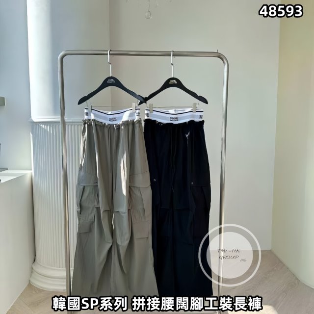 🐥執雞🐥韓國SP系列 拼接腰闊腳工裝長褲【(48593.)】⚠️數量有限⚠️先入先得⚠️售完即止⚠️