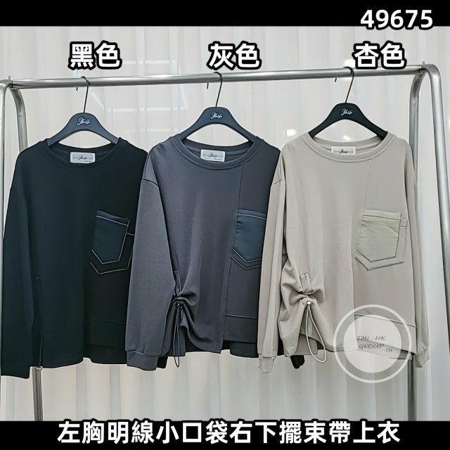 🐥執雞🐥韓國BAK系列 左胸明線小口袋右下擺束帶上衣【(49675.)】⚠️數量有限⚠️先入先得⚠️售完即止⚠️