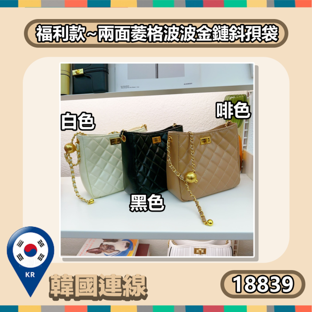 18839.🐥執雞🐥韓國連線🇰🇷HS系列❤️韓國 福利款~兩面菱格波波金鏈斜孭袋⚠️數量有限⚠️先入先得⚠️售完即止⚠️