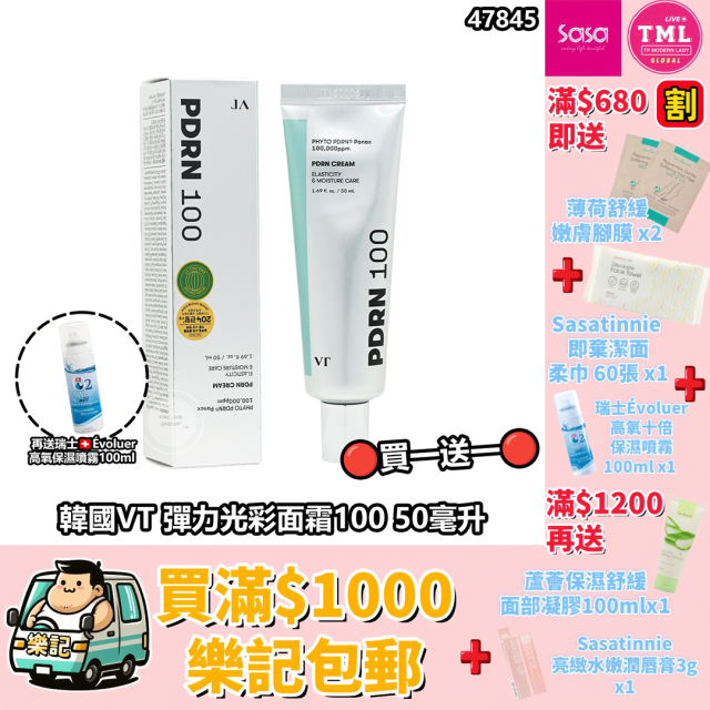 🐥執雞🐥SASA X TML 韓國VT 彈力光彩面霜100 50毫升PDRN CREAM 100, 50ML【 買一送一 (47845.)】⚠️數量有限⚠️先入先得⚠️售完即止⚠️