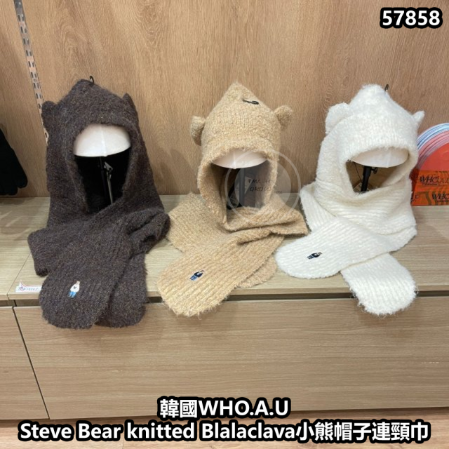 🐥執雞🐥韓國WHO.A.U Steve Bear knitted Blalaclava小熊帽子連頸巾(WHHMF4T52A)【4(57858.)】⚠️數量有限⚠️先入先得⚠️售完即止⚠️