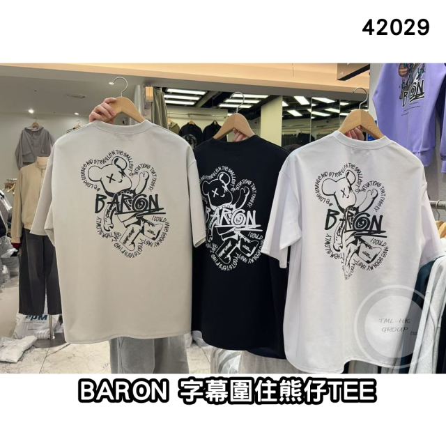 42028.韓國🇰🇷連線 BARON 背面熊仔塗鴉字TEE
