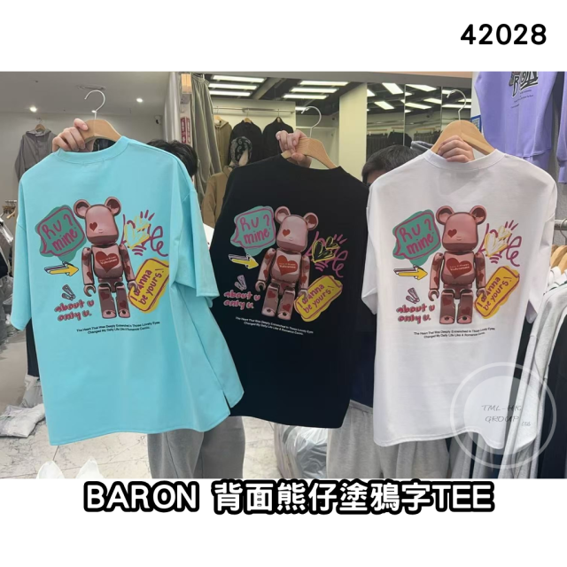 42028.韓國🇰🇷連線 BARON 背面熊仔塗鴉字TEE