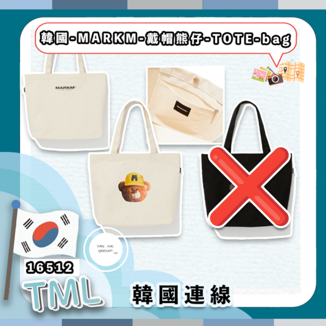 16512.🐥執雞🐥🌟🇰🇷韓國MARKM 戴帽熊仔 TOTE bag (AGA0702/AGA0703)⚠️數量有限⚠️先入先得⚠️售完即止⚠️