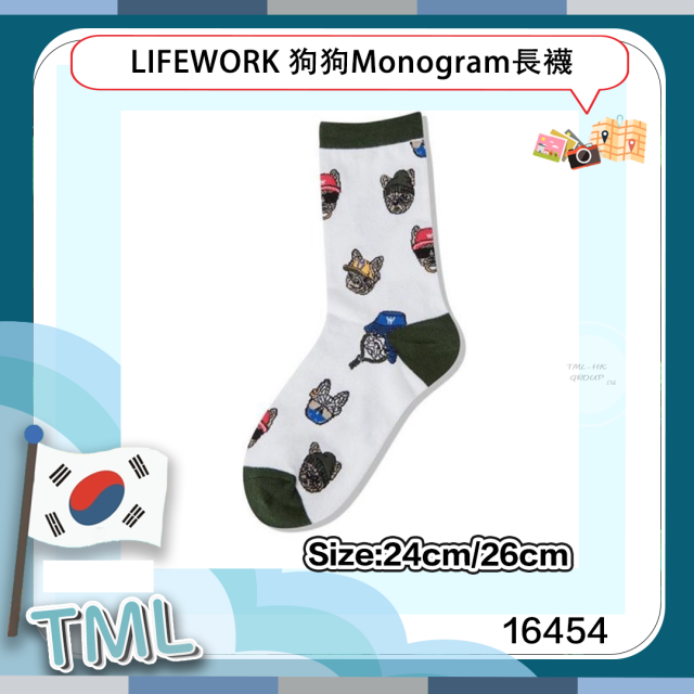 16454.【6/5 韓國連線🇰🇷】LIFEWORK 狗狗Monogram長襪(LW235SO132) ⚠️10/5 截單⚠️預計6月中前到貨