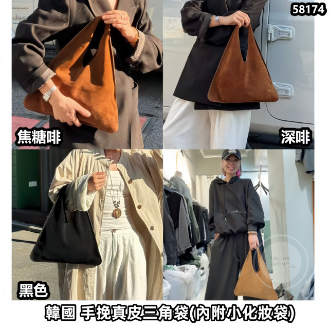 韓國 手挽真皮三角袋(內附小化妝袋)【買滿5件包郵 | 福利款 | 2/11截單 | 預計12月初至中到貨 | 20251028B(58174.)】