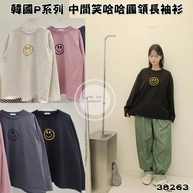 韓國P系列 中間笑哈哈圓領長袖衫【9/10截單 | 預計10月中至尾出貨 | 20251004(38263.)】