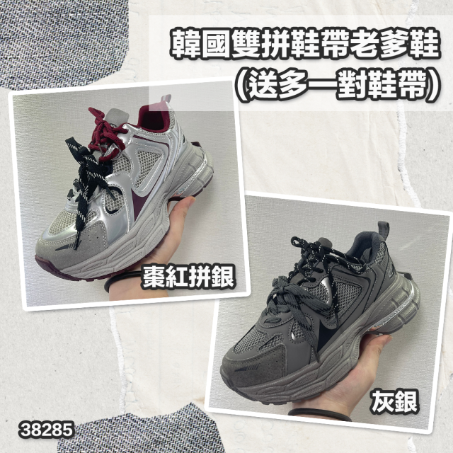 38285.27/10月韓國連線第二彈 (買五件即送隨機手機繩一條)韓國雙拼鞋帶老爹鞋 (送多一對鞋帶)⚠️1/11截單⚠️預計12月中前到貨