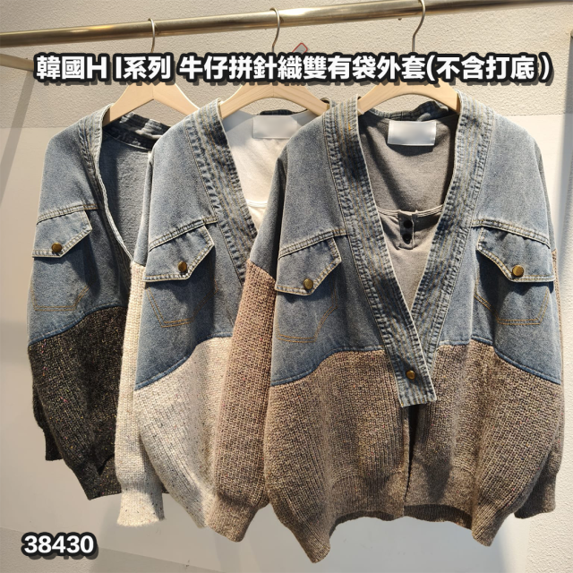 38430.20/11月韓國連線(第二團) 韓國H I系列 牛仔拼針織雙有袋外套🔴不含打底🔴⚠️25/11截單⚠️預計1月初到貨