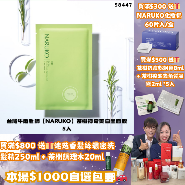 台灣牛爾老師【NARUKO】茶樹神奇美白黑面膜5入【$1000包郵 | 27/10截單 | 預計12月初至中到貨 | 20251022(58447.)】