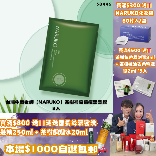 台灣牛爾老師【NARUKO】茶樹神奇痘痘黑面膜8入【$1000包郵 | 27/10截單 | 預計12月初至中到貨 | 20251022(58446.)】