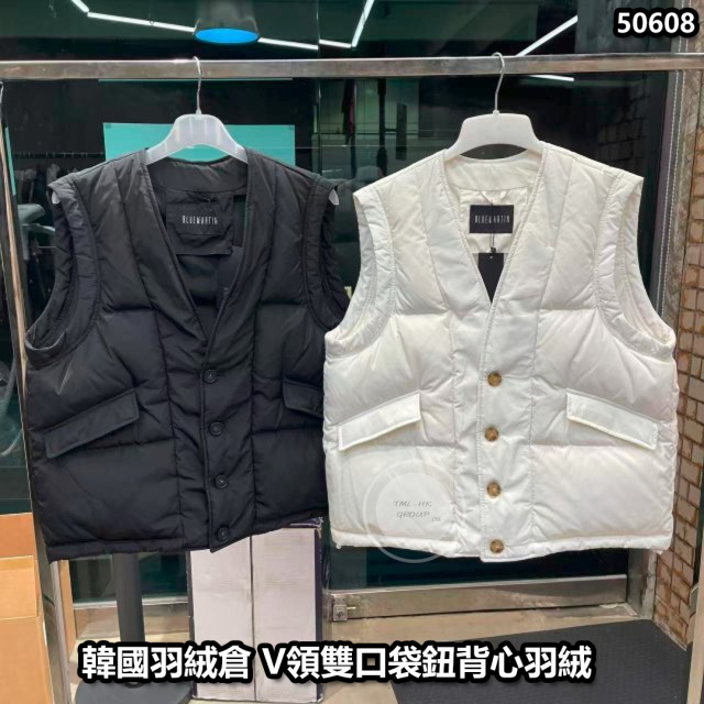 韓國羽絨倉 V領雙口袋鈕背心羽絨 (SS06)【1/10截單 | 預計11月中到貨 | 20250926B(50608.)】