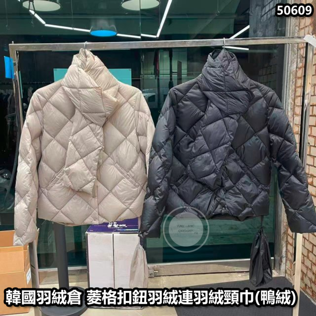 韓國羽絨倉 菱格扣鈕羽絨連羽絨頸巾(鴨絨) (BM2002)【1/10截單 | 預計11月中到貨 | 20250926B(50609.)】