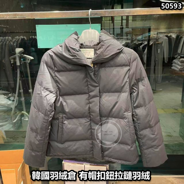 韓國羽絨倉 有帽扣鈕拉鏈羽絨 (637-45002)【1/10截單 | 預計11月中到貨 | 20250926B(50593.)】