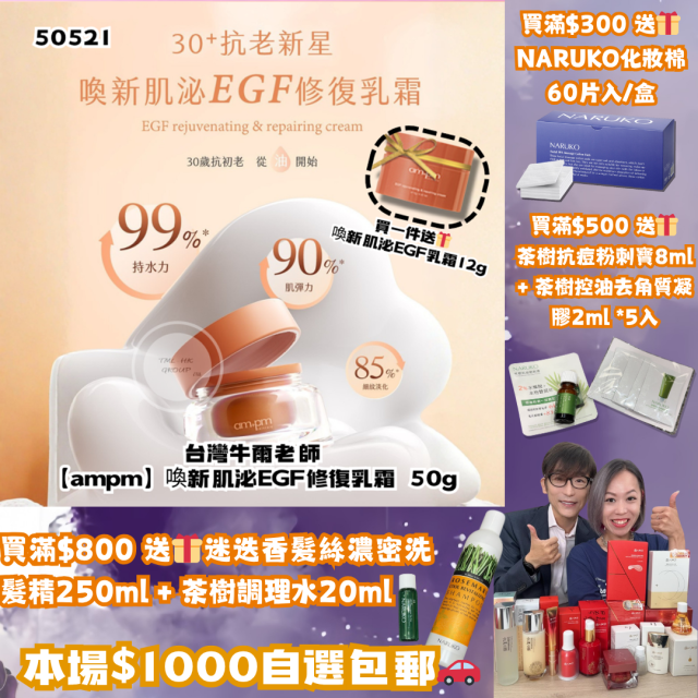 台灣牛爾老師【ampm】喚新肌泌EGF修復乳霜 50g+12g【$1000包郵 | 27/10截單 | 預計12月初至中到貨 | 20251022(50521.)】