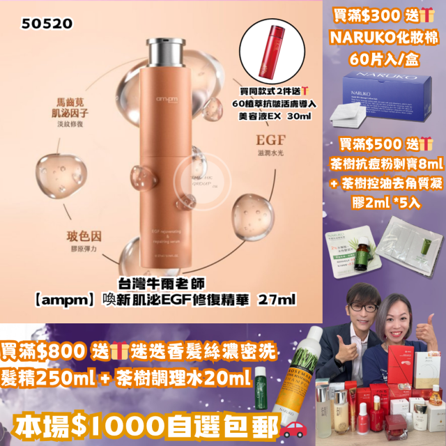 台灣牛爾老師【ampm】喚新肌泌EGF修復精華 27ml【$1000包郵 | 27/10截單 | 預計12月初至中到貨 | 20251022(50520.)】