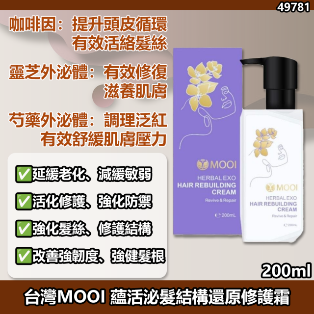 台灣MOOI 蘊活泌髮結構還原修護霜200ML【$1000包郵(自選) | 25/10截單 | 預計12月初到貨 | 20251020(49781.)】