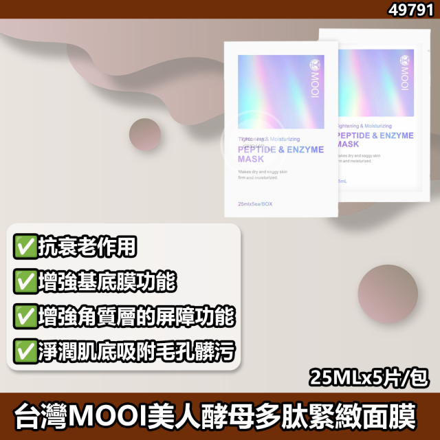 台灣MOOI美人酵母多肽緊緻面膜25MLx5片/包 (頸膜連面膜)【$1000包郵(自選) | 25/10截單 | 預計12月初到貨 | 20251020(49791.)】