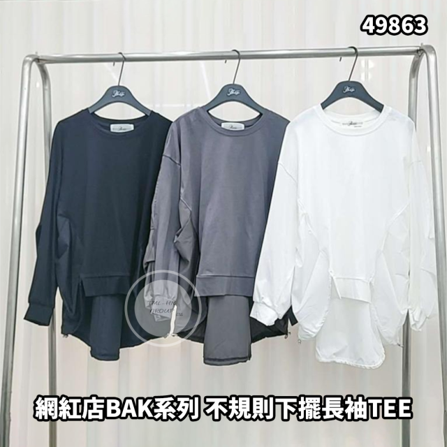 韓國 網紅店 BAK系列 不規則下擺長袖TEE【買滿5件包郵 | 2/11截單 | 預計12月初至中到貨 | 20250821(49863.)】