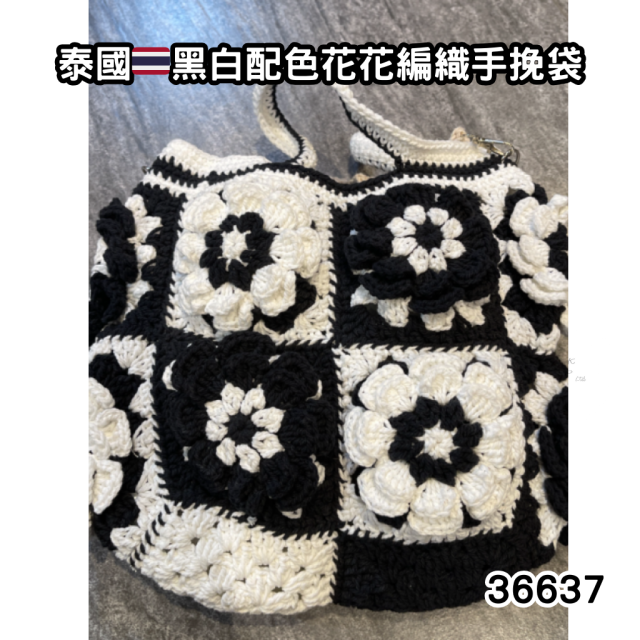 36637.🐥執雞🐥 泰國🇹🇭黑白配色花花編織手挽袋(KT0942)⚠️數量有限⚠️先入先得⚠️售完即止⚠️