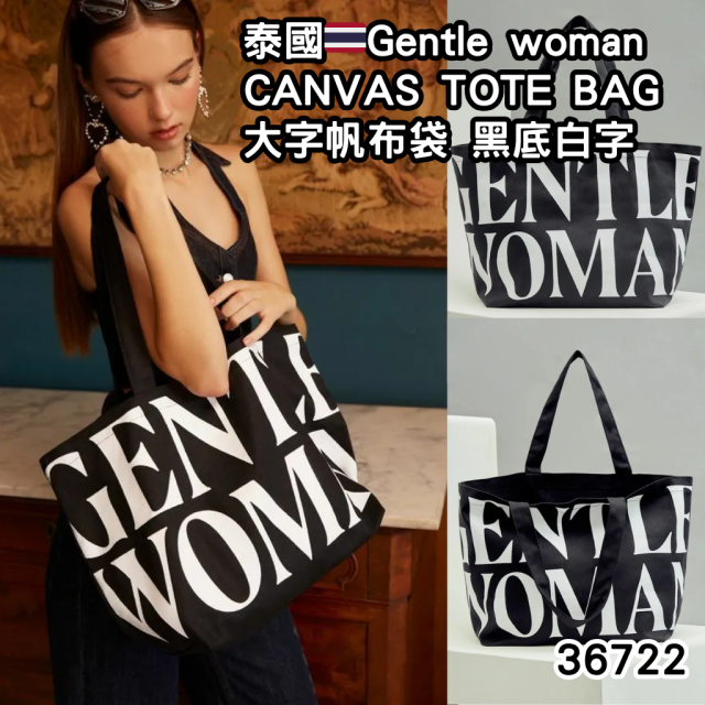 36722.🐥執雞🐥泰國🇹🇭Gentle woman CANVAS TOTE BAG大字帆布袋 黑底白字 ⚠️數量有限⚠️先入先得⚠️售完即止⚠️