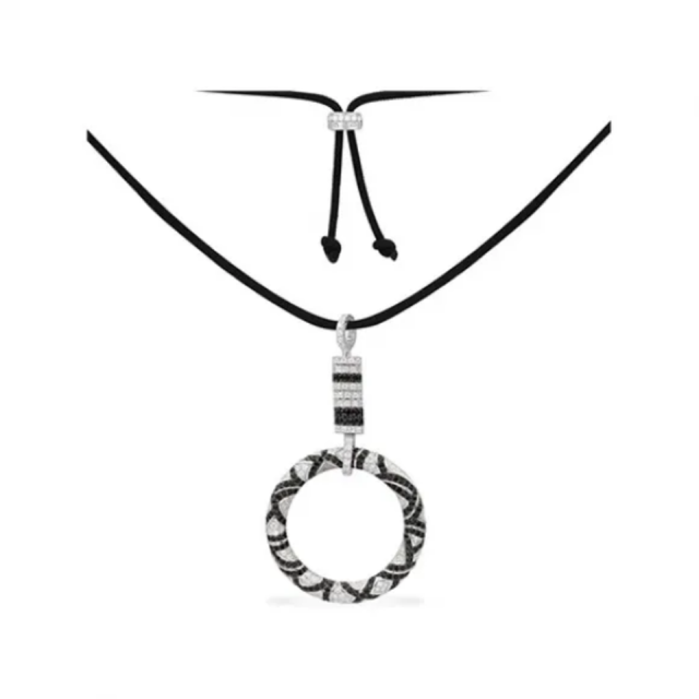 APM MONACO 黑白圓環吊墜尼龍項鍊-黑色(AC6083XBZ)【(48387.)】