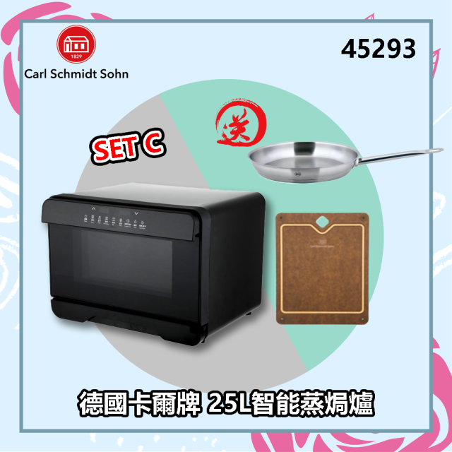 45293.🔴包郵樂記🔴德國卡爾牌 25L智能蒸焗爐🔴SET C🔴送🎁24cm 不鏽鋼煎盤 + 37cm 木纖維砧板 (每購買1SET回贈 $100購物金)⚠️21/5截單⚠️預計6月尾到貨❣️