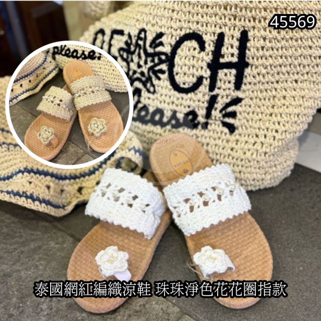 45569.🐥執雞🐥泰國連線🇹🇭泰國網紅編織涼鞋 珠珠淨色花花圈指款⚠️數量有限⚠️先入先得⚠️售完即止