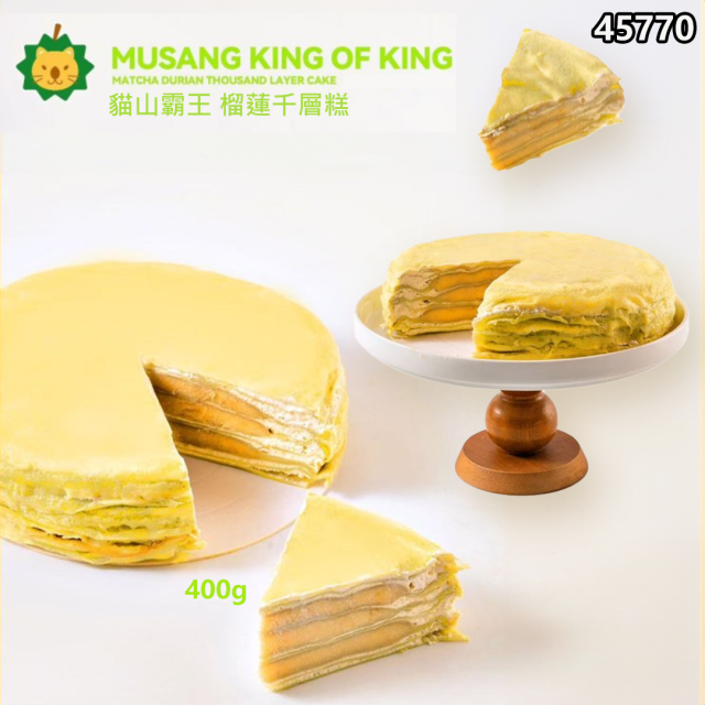 榴槤專場 貓⼭霸王 榴蓮千層糕 400g【買滿$688包郵(SF凍櫃) | 22/7截單 | 預計8月中到貨 | 20250717(45770.)】