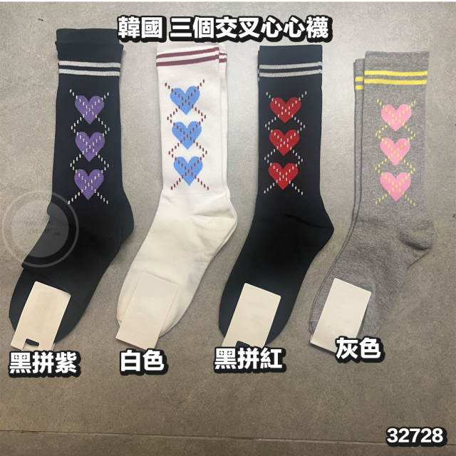 32728.🐥執雞🐥韓國連線 韓國 三個交叉心心襪⚠️數量有限⚠️先入先得⚠️售完即止⚠️