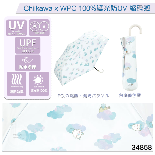 34858.🐥執雞🐥Chiikawa x WPC 100%遮光防UV 縮骨遮 ⚪白底藍色雲⚪ (801-CK02-102 BL) ⚠️數量有限⚠️先入先得⚠️售完即止⚠️