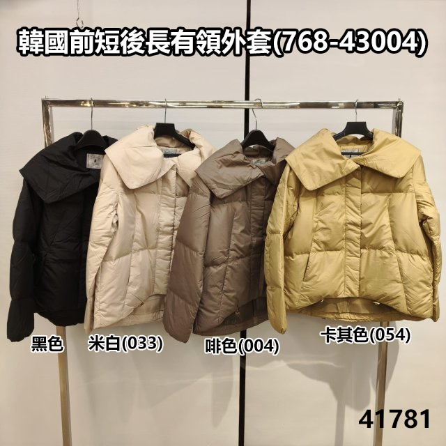 41781.🔴凡購買任何羽絨倉服裝3件,送隨機顏色羽絨頸巾🔴15/1韓國🇰🇷連線 韓國前短後長有領外套(768-43004)⚠️18/1截單⚠️預計2月尾到貨